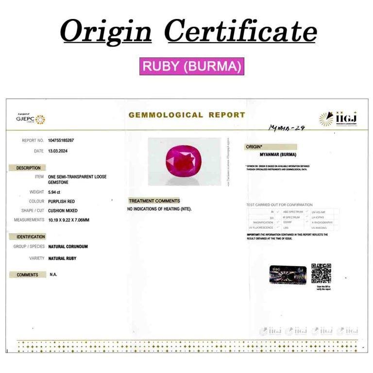 5.94 carats Ruby ( 6.6 ratti Manik )