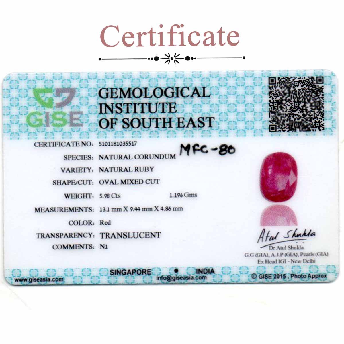 5.48 carats Ruby Heated ( 6.09 ratti Manik ) Original price was: ₹184,950.00.Current price is: ₹157,550.00.