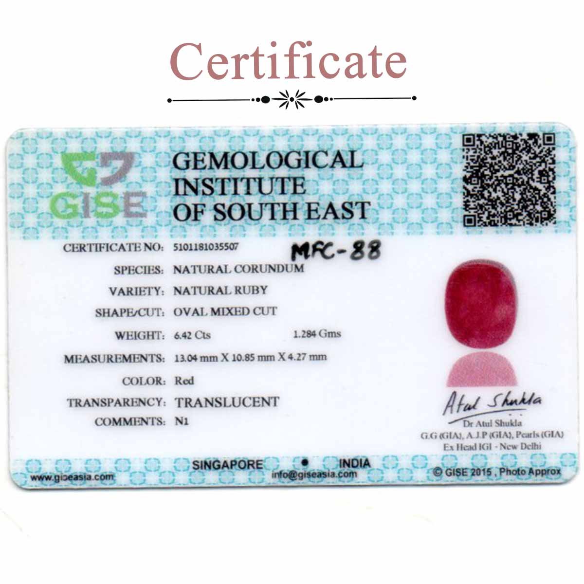 6.42 carats Ruby Heated ( 7.13 ratti Manik )