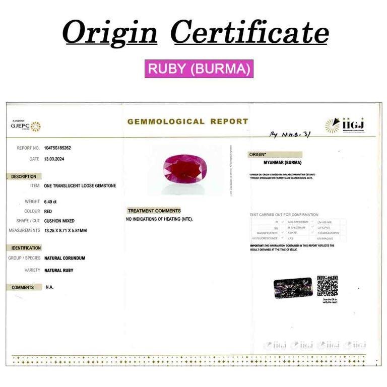6.49 carats Ruby ( 7.21 ratti Manik )
