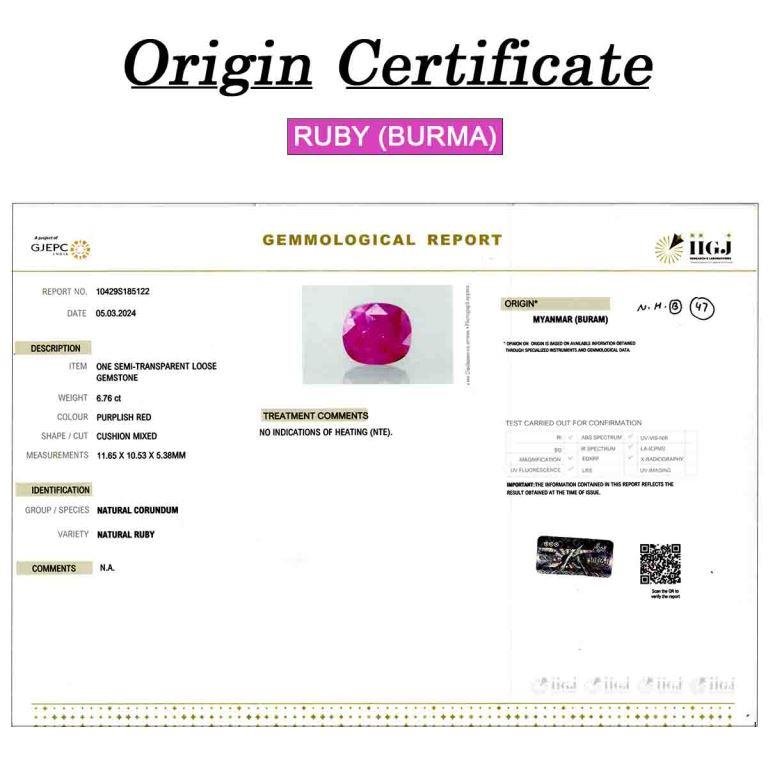 6.76 carats Ruby ( 7.51 ratti Manik )