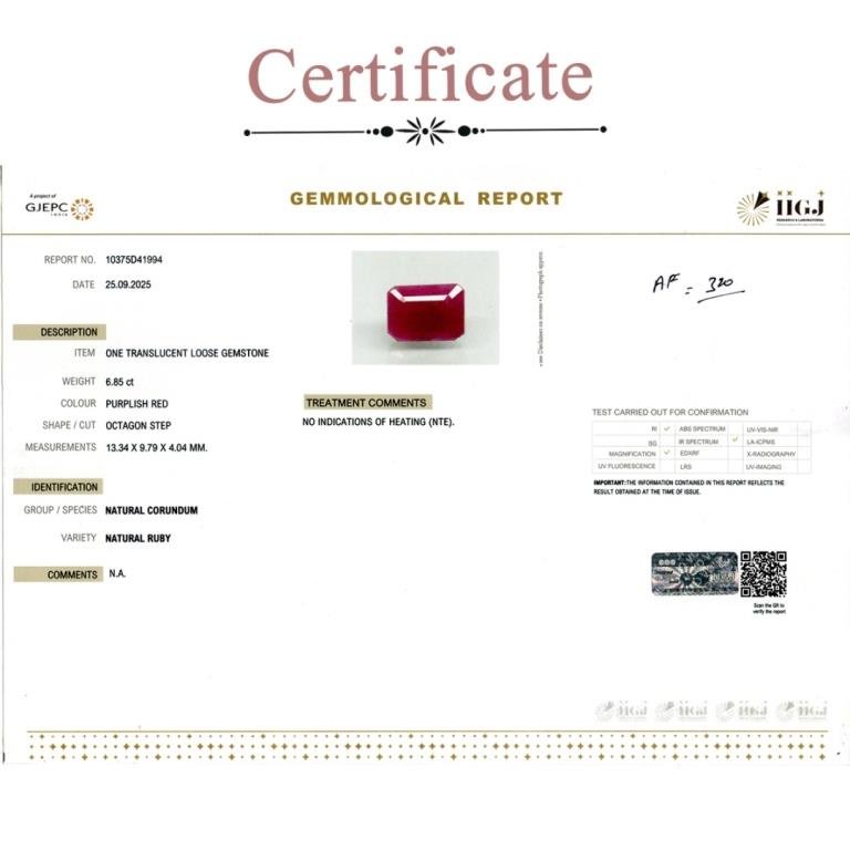 6.85 carats Ruby ( 7.61 ratti Manik )