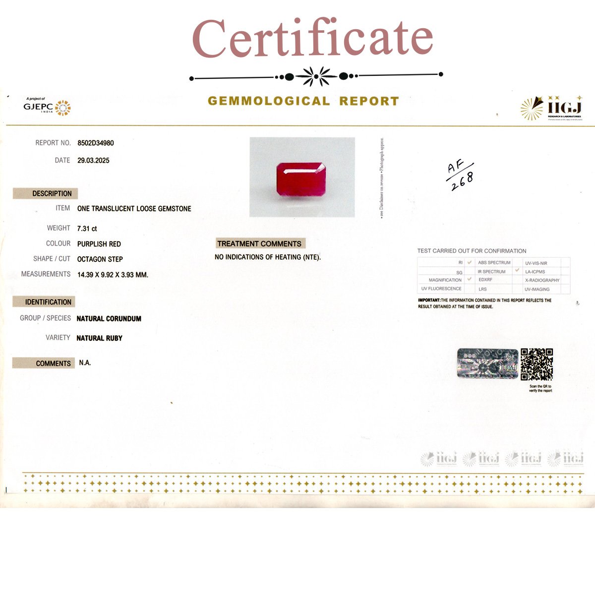 6.31 carats Ruby ( 7.01 ratti Manik )