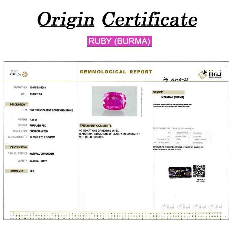 7.56 carats Ruby ( 8.4 ratti Manik )