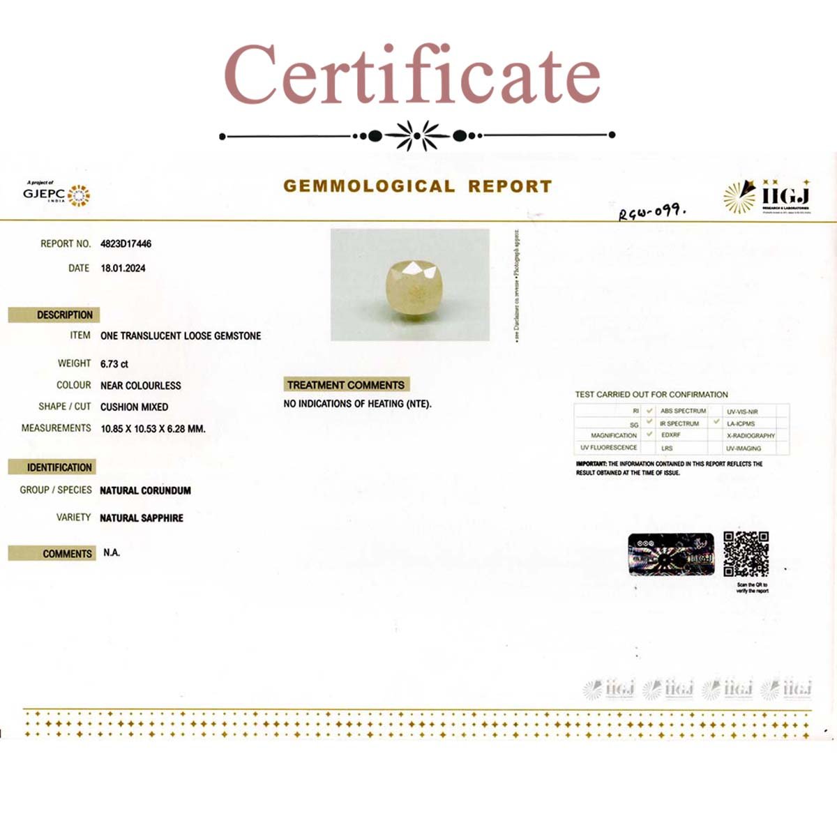 6.73 Carats White Sapphire ( 7.48 Ratti Safed Pukhraj )