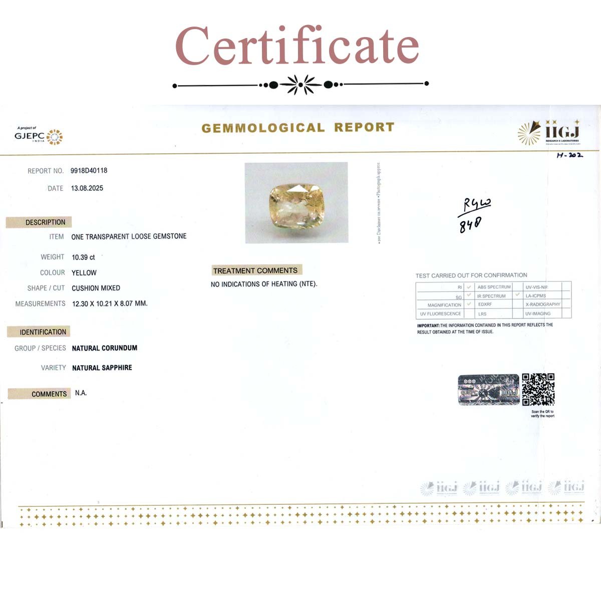 10.39 carats Yellow Sapphire ( 11.54 ratti Pukhraj )