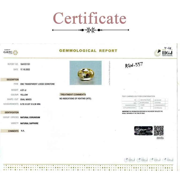 4.01 Carats Yellow Sapphire ( 4.46 Ratti Pukhraj )