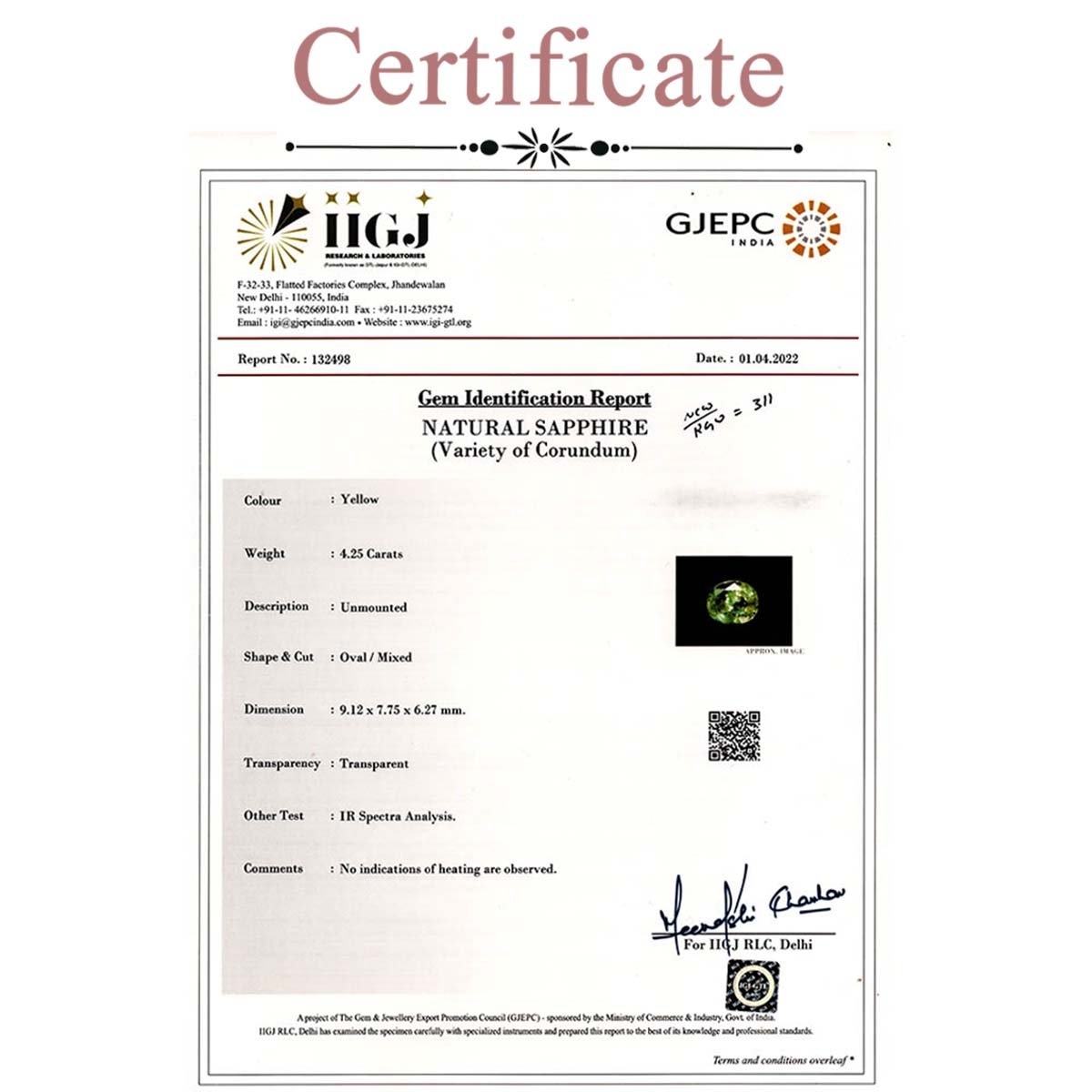 4.25 Carats Yellow Sapphire ( 4.72 Ratti Pukhraj )