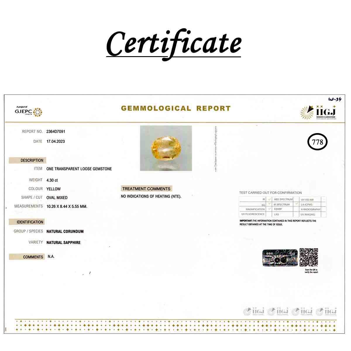 4.3 Carats Yellow Sapphire ( 4.78 Ratti Pukhraj )