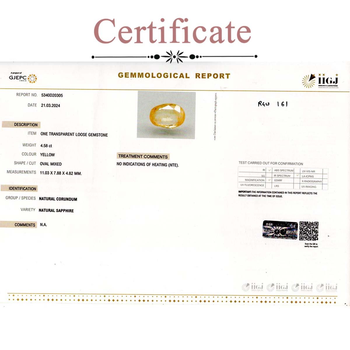 4.58 Carats Yellow Sapphire ( 5.09 Ratti Pukhraj )