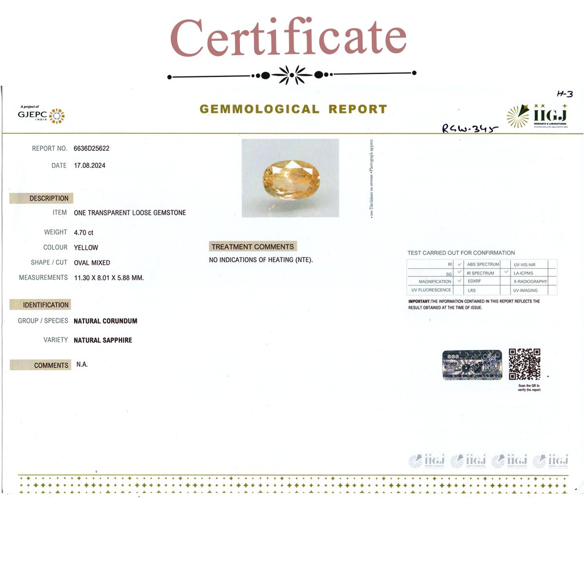 4.87 Carats Yellow Sapphire ( 5.41 Ratti Pukhraj )