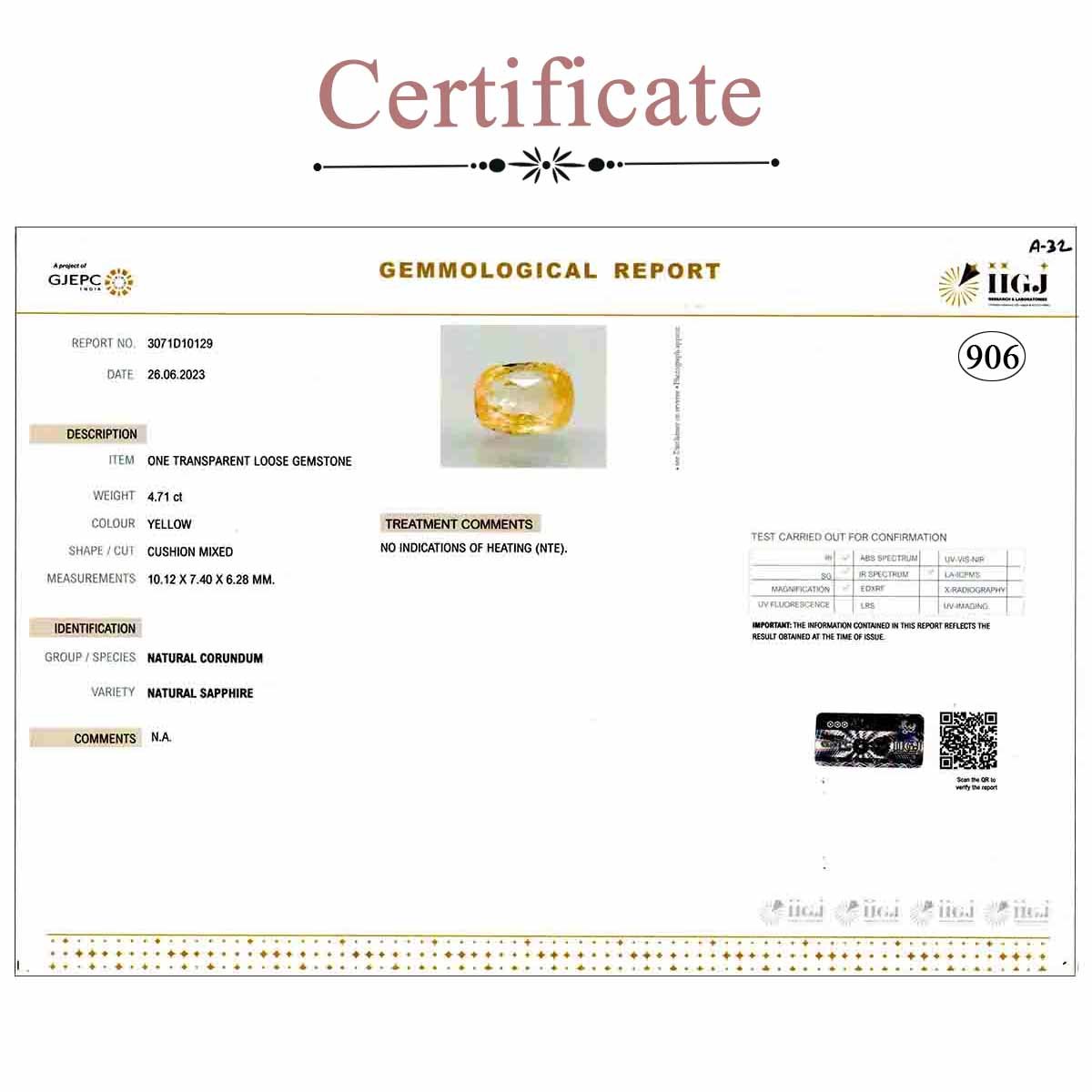 4.71 Carats Yellow Sapphire ( 5.23 Ratti Pukhraj )
