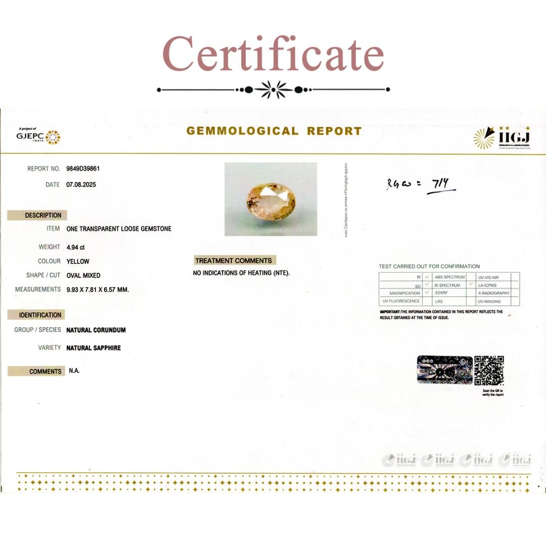 4.94 carats Yellow Sapphire ( 5.49 ratti Pukhraj )