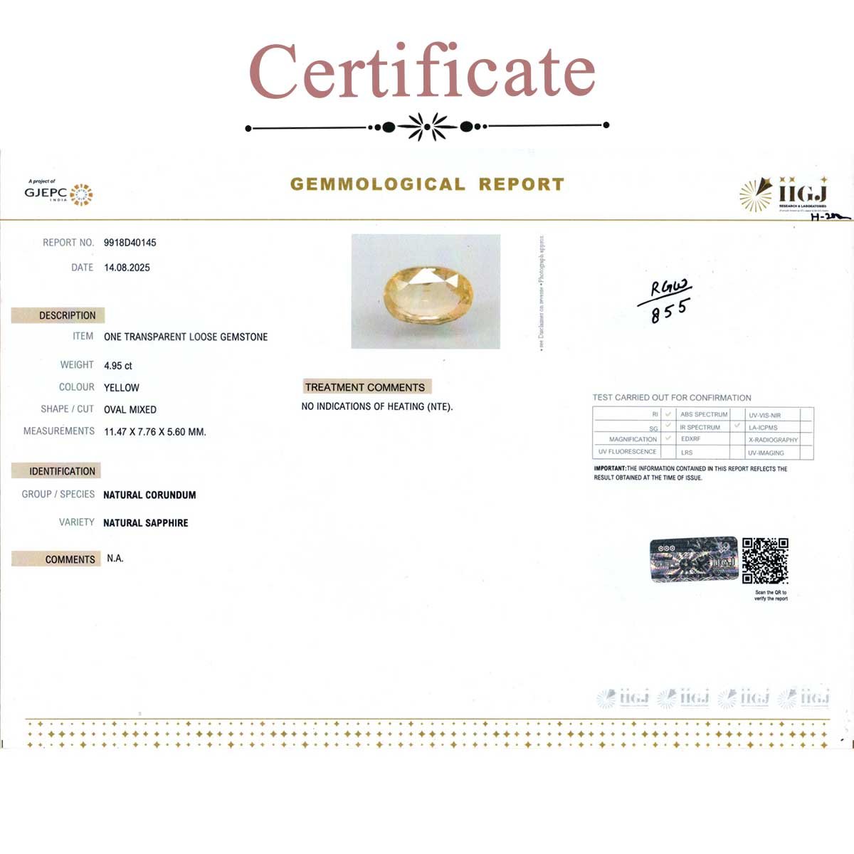 4.95 carats Yellow Sapphire ( 5.5 ratti Pukhraj )