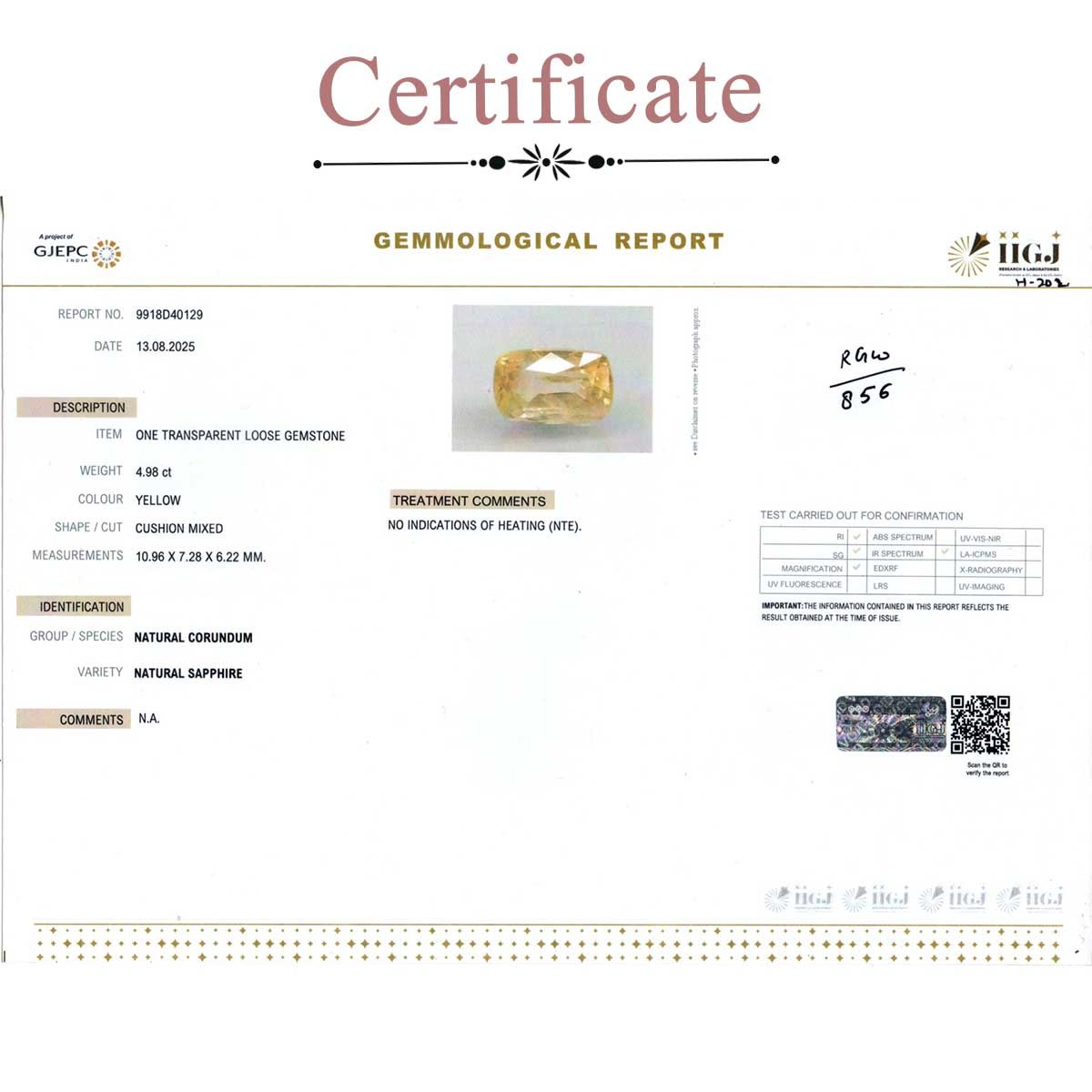 4.95 carats Yellow Sapphire ( 5.5 ratti Pukhraj )