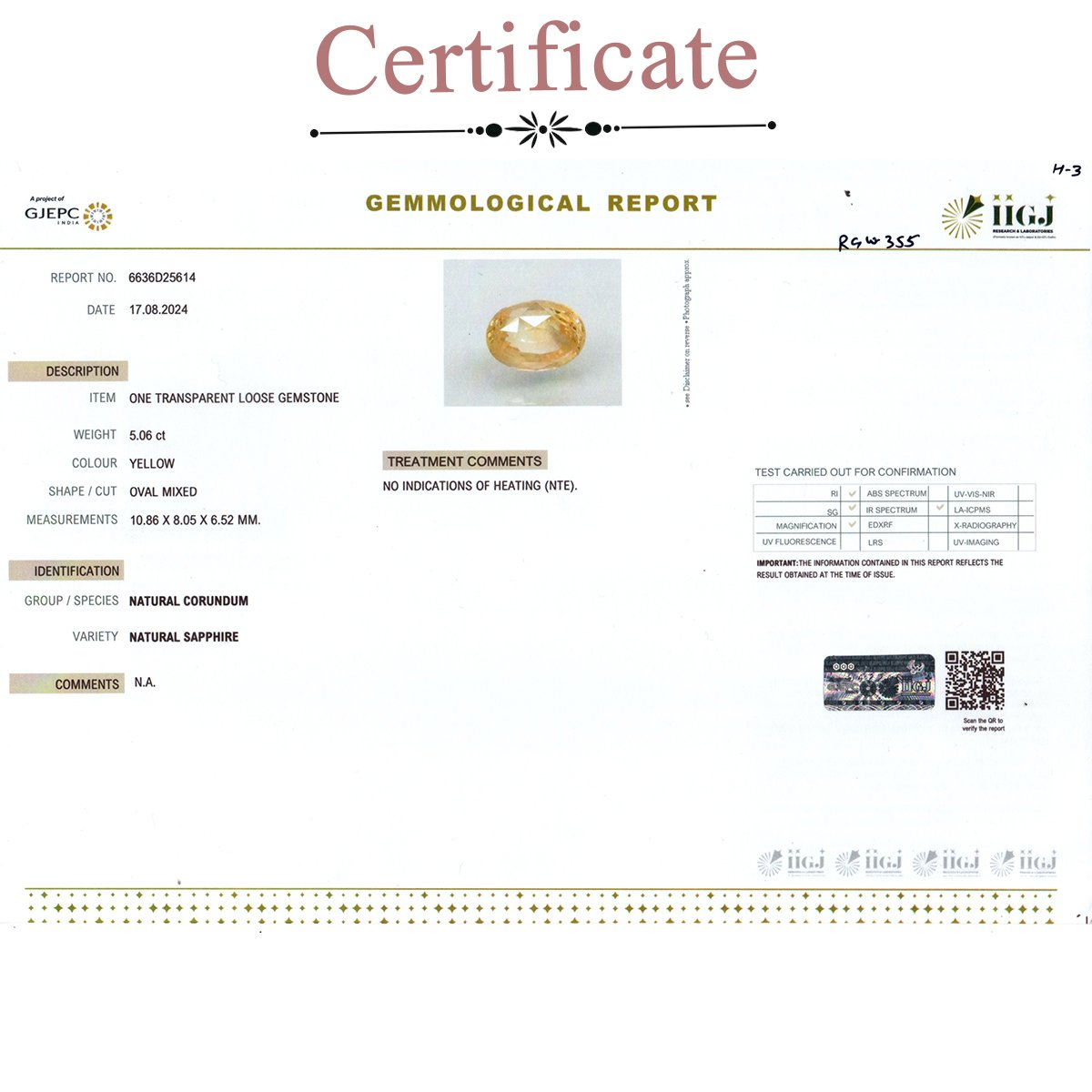5.06 Carats Yellow Sapphire ( 5.62 Ratti Pukhraj )
