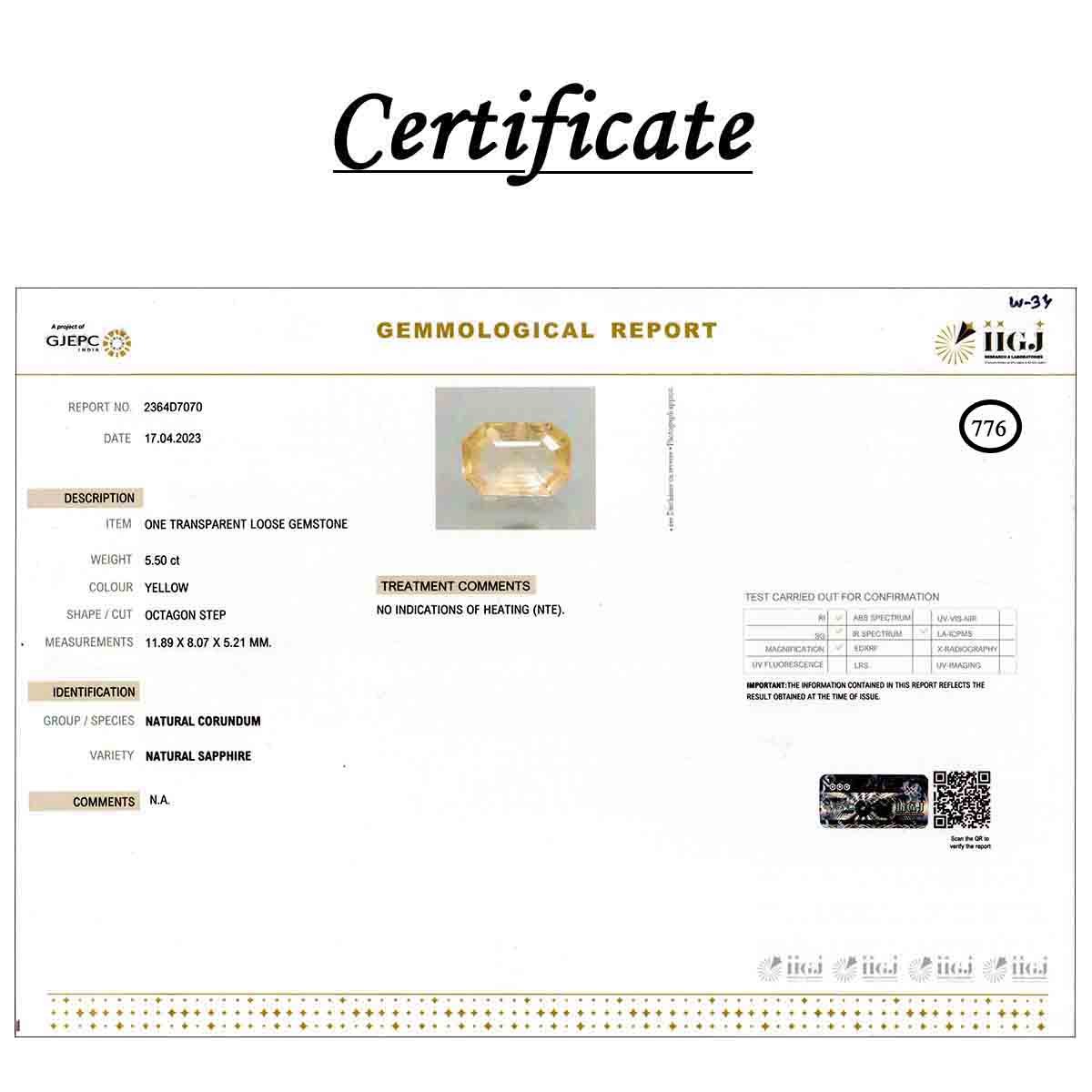5.5 Carats Yellow Sapphire ( 6.11 Ratti Pukhraj )