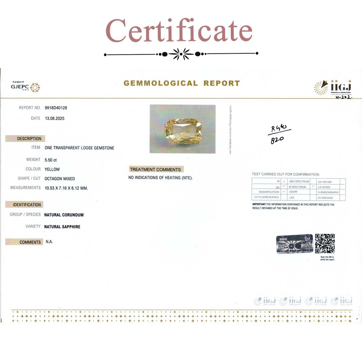 5.5 carats Yellow Sapphire ( 6.11 ratti Pukhraj )