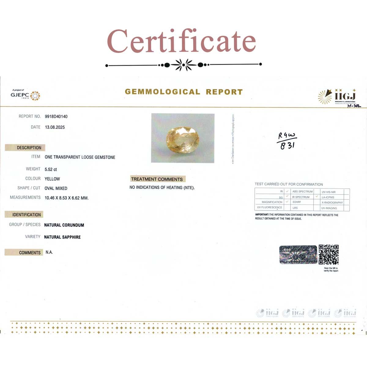 5.52 carats Yellow Sapphire ( 6.13 ratti Pukhraj )