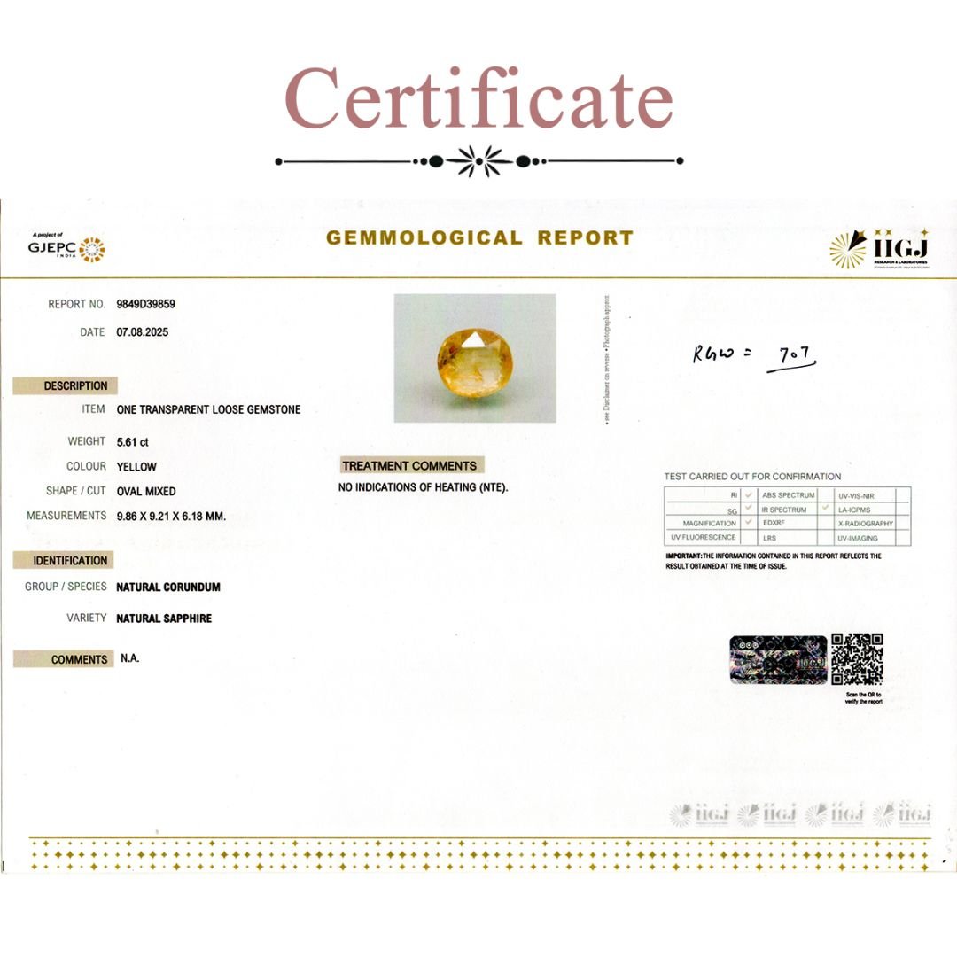 5.52 carats Yellow Sapphire ( 6.13 ratti Pukhraj )