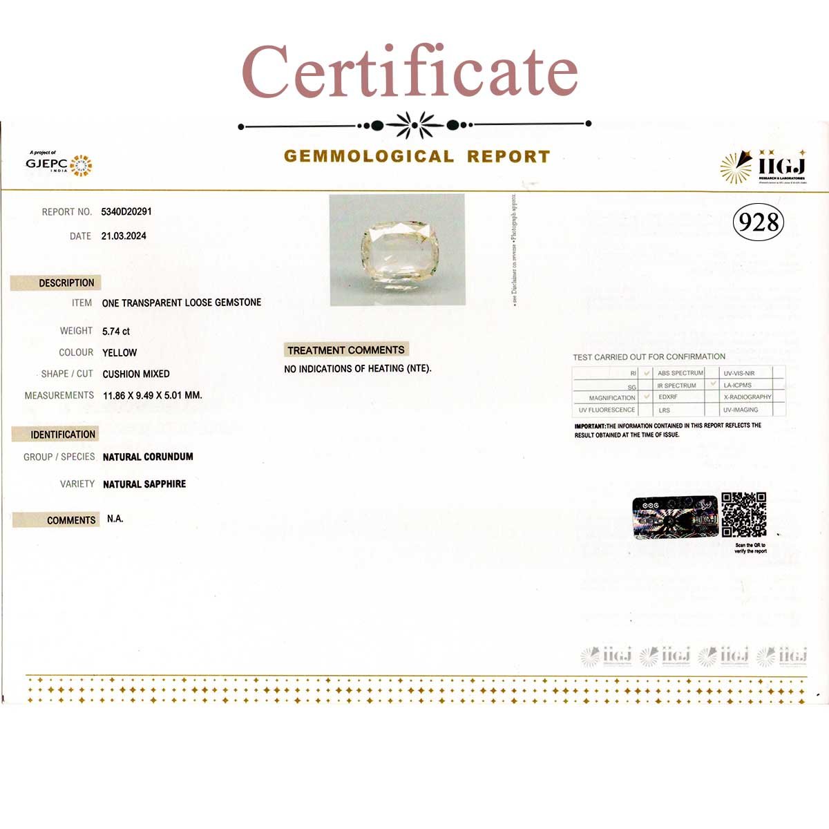 5.74 Carats Yellow Sapphire ( 6.38 Ratti Pukhraj )