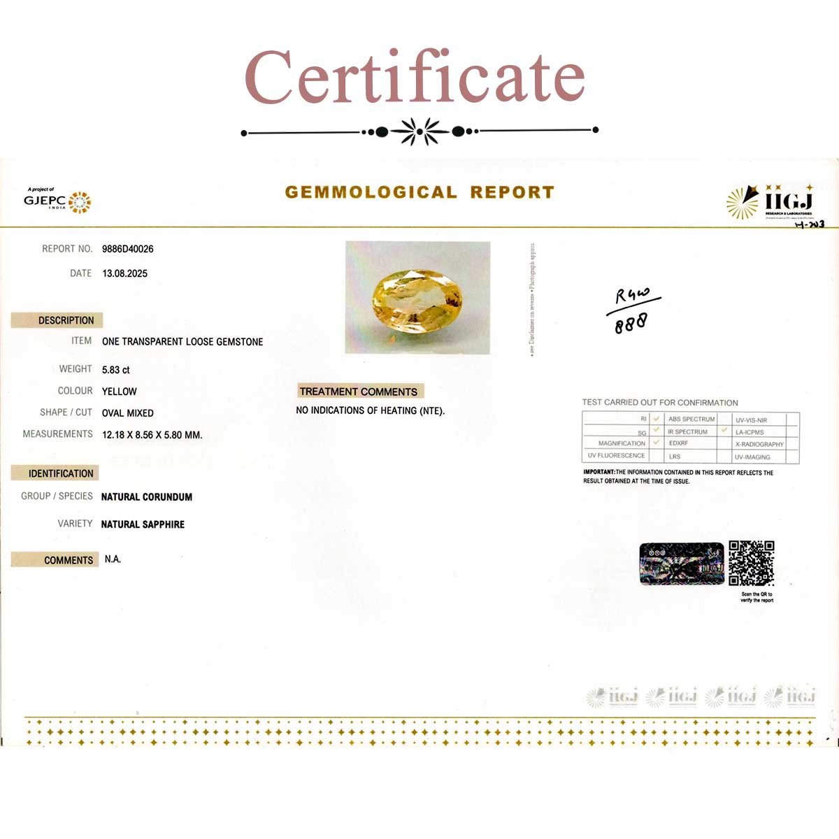 5.83 Carats Yellow Sapphire ( 6.48 Ratti Pukhraj )