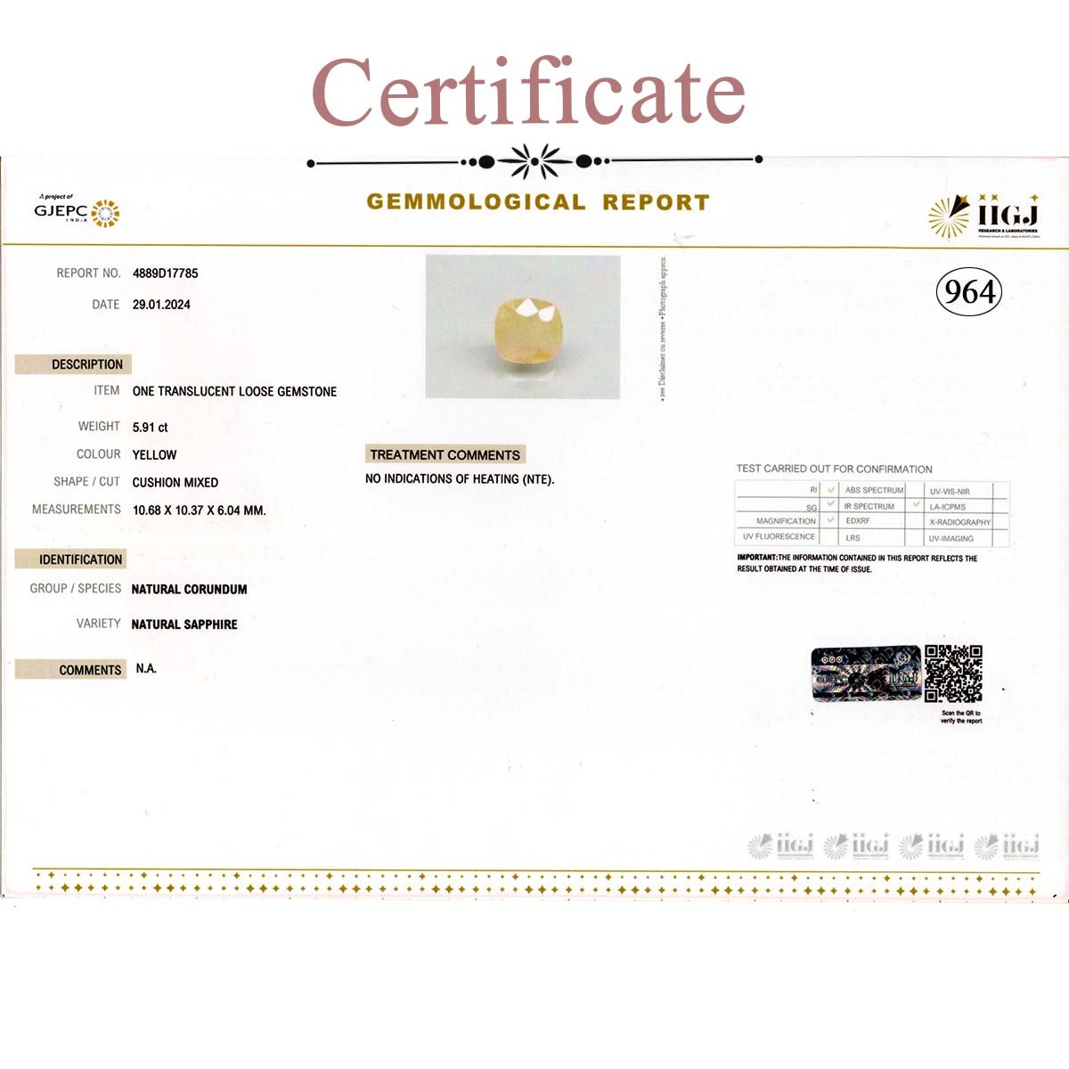5.91 Carats Yellow Sapphire ( 6.57 Ratti Pukhraj )