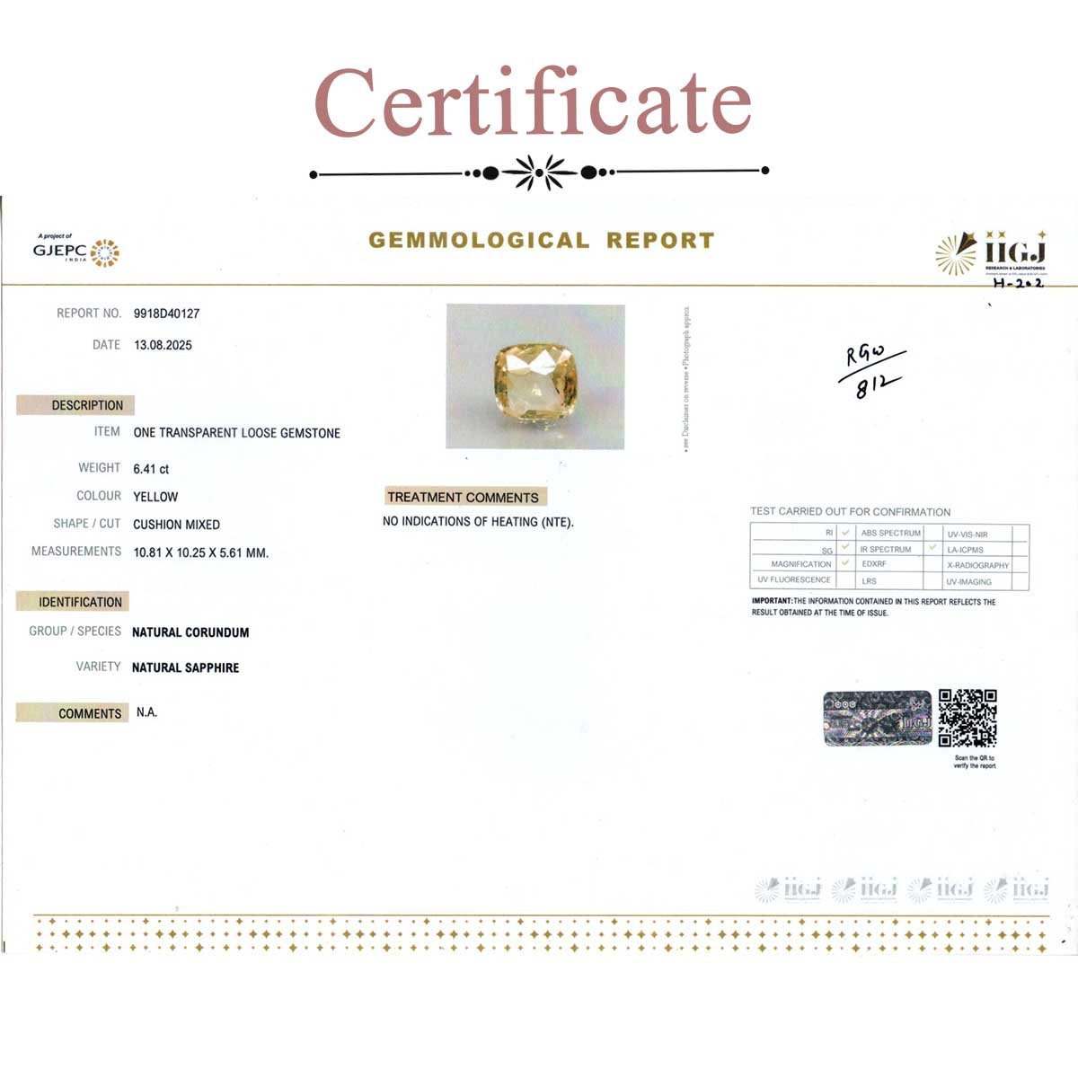 6.41 carats Yellow Sapphire ( 7.12 ratti Pukhraj )