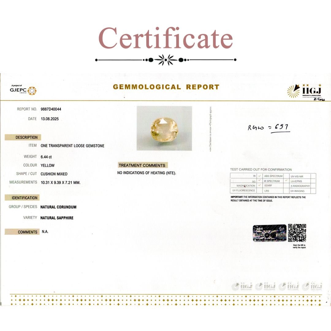 6.44 carats Yellow Sapphire ( 7.16 ratti Pukhraj )