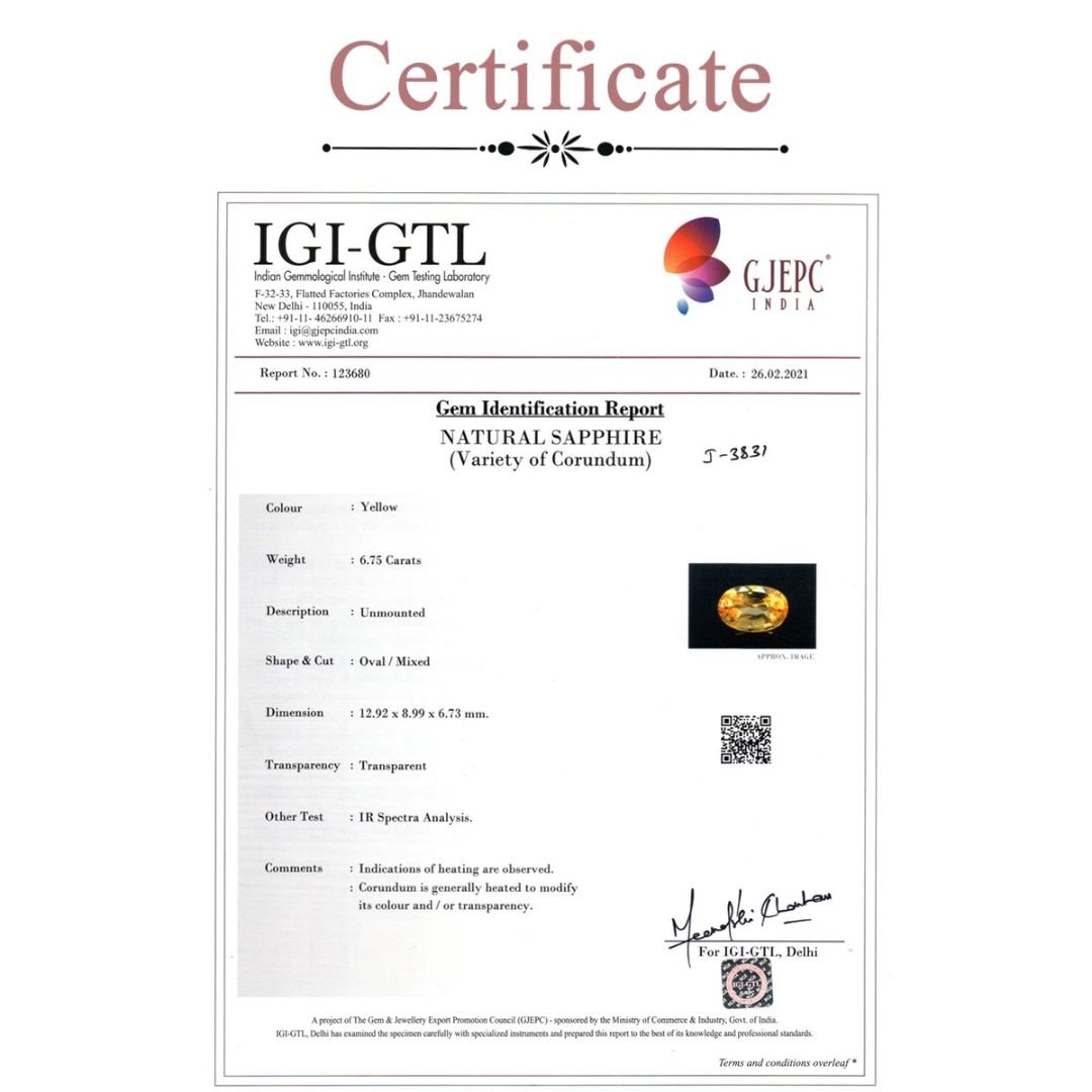 6.75 carats Yellow Sapphire ( 7.5 ratti Pukhraj )