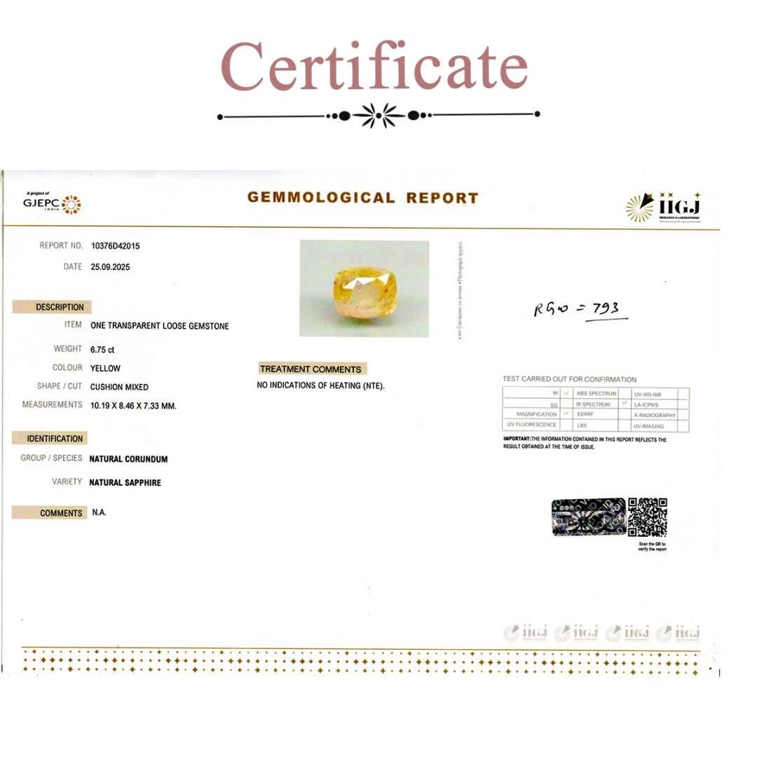 6.75 carats Yellow Sapphire ( 7.5 ratti Pukhraj )